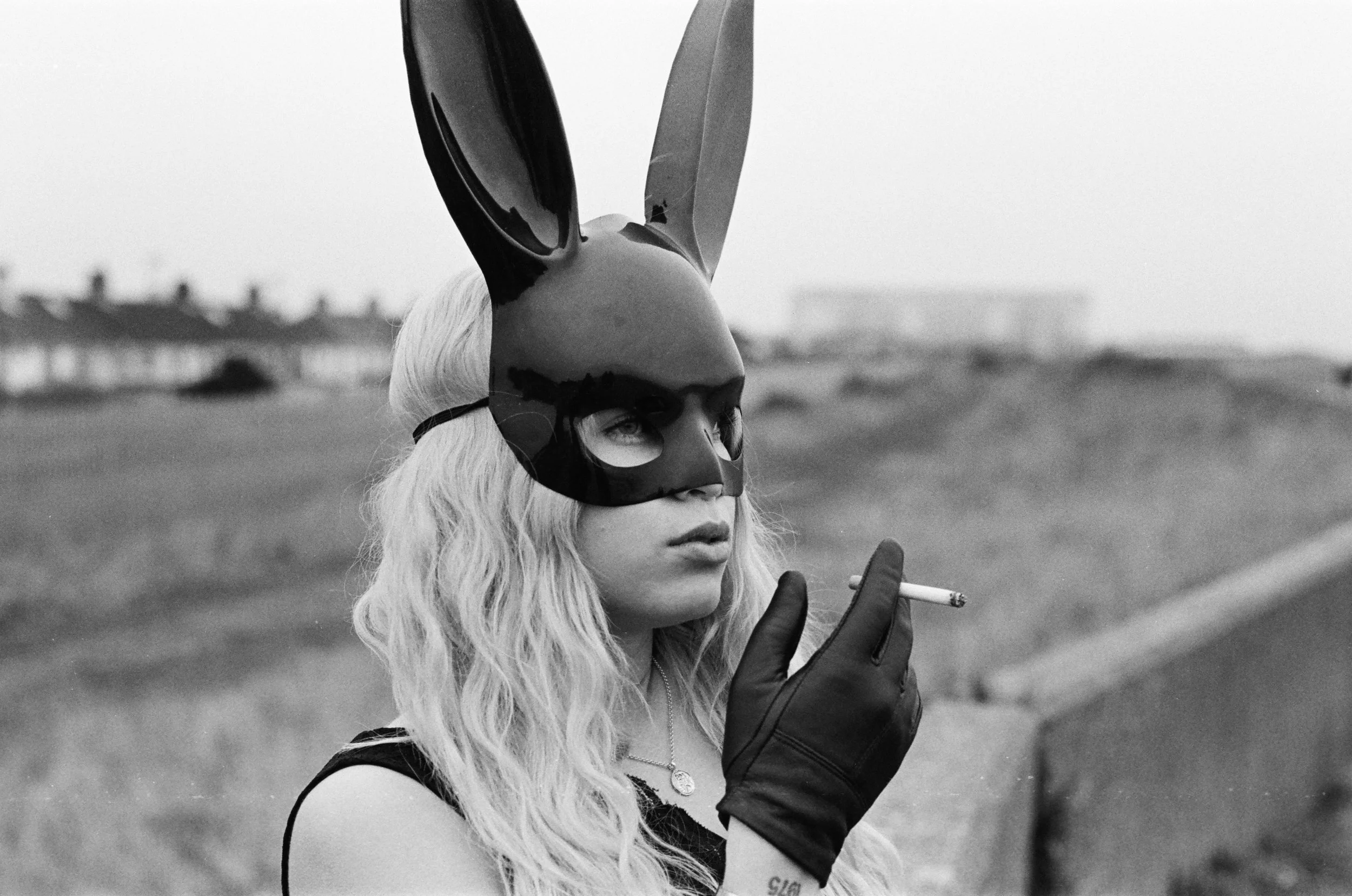 I then get a message from a friend asking if I wanted to come along to a shoot she had organised that was Helmut Newton inspired. I obviously jumped at the chance and thought what better opportunity then to take my 35mm film camera and hopefully grab a photo that provokes that feeling I am after. I was happy with the results and in particular the one below. Its playful with the mask and gloves, she’s obviously a very pretty young lady, but she also has emotion in the eyes that to me suggest struggle, the cigarette adds to a suggestion of struggle too….
